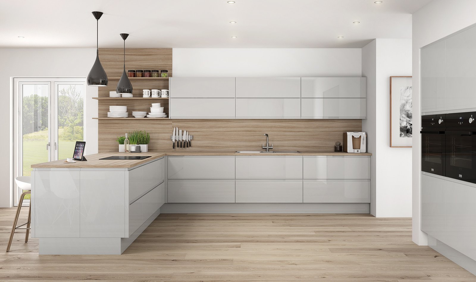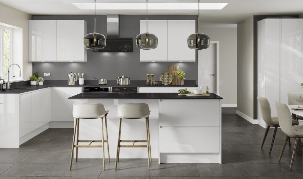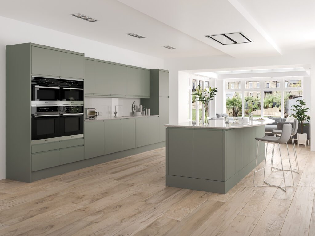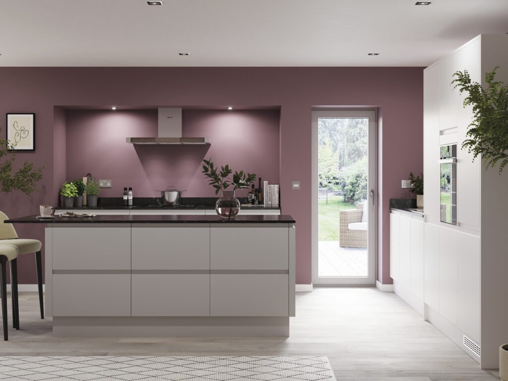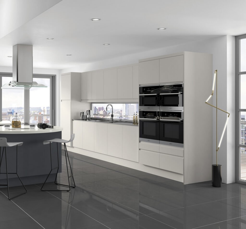 “J” Profile sculptured handless contemporary design. Simplistic and unfussy. The linear handle design flows from door to door, door to drawer and even around corners. Available in five gloss colours and the Linden spectrum of made to order painted colours. Mix and match for contrast, the options are only limited by imagination.