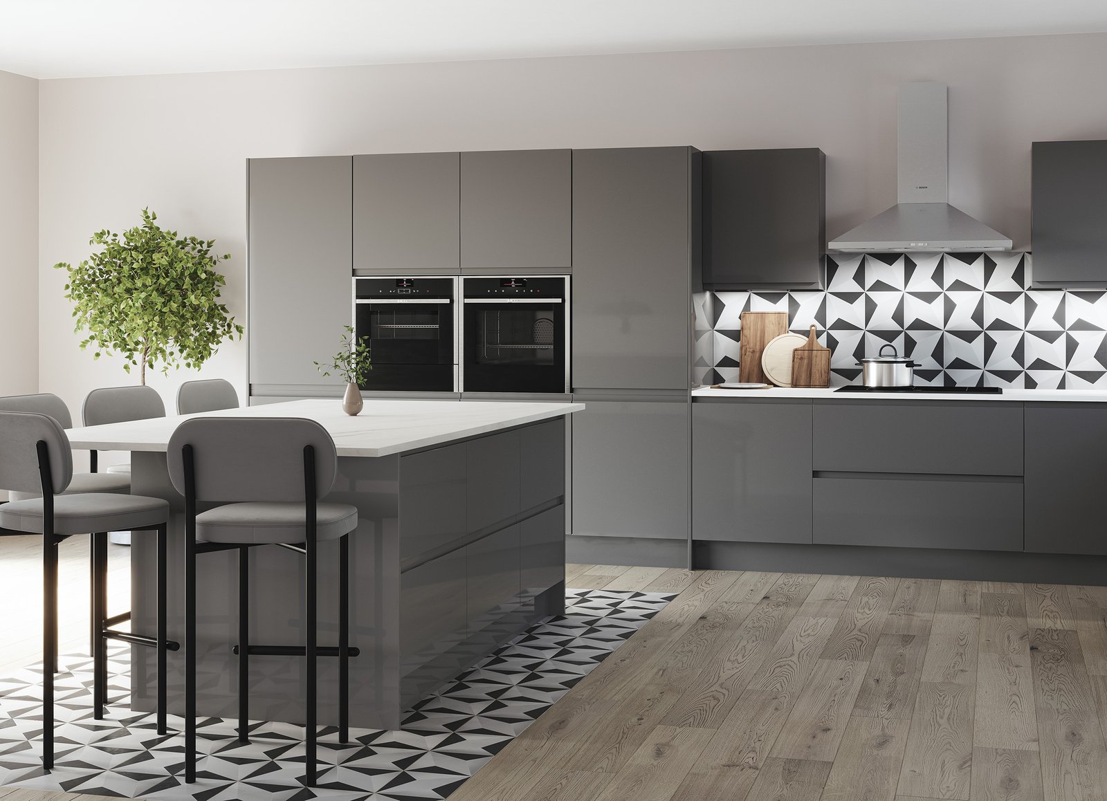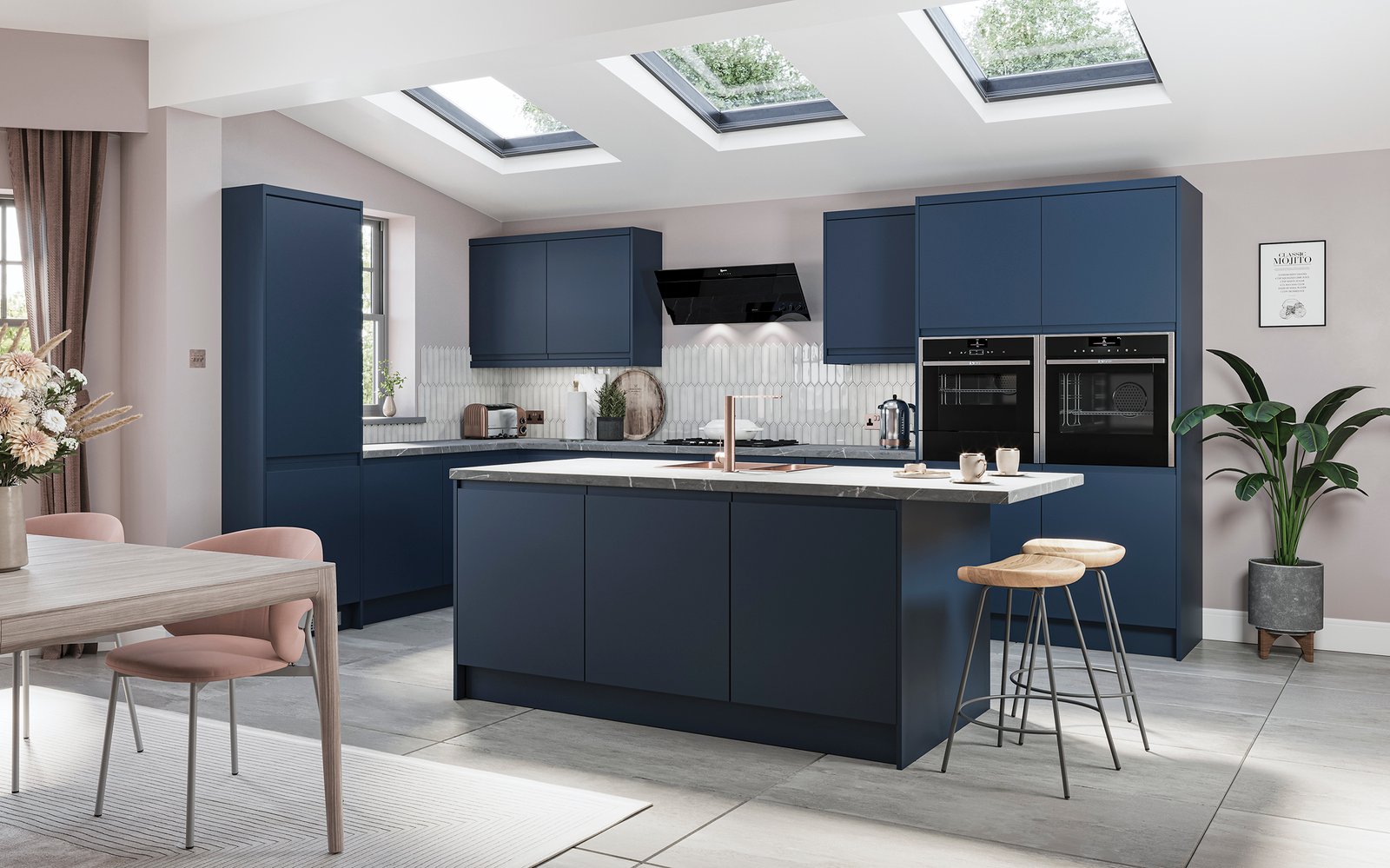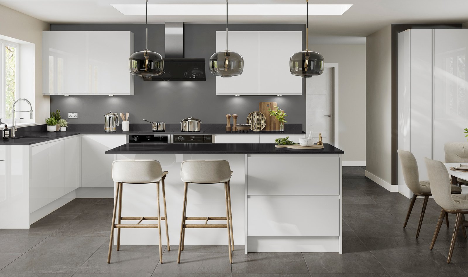 “J” Profile sculptured handless contemporary design. Simplistic and unfussy. The linear handle design flows from door to door, door to drawer and even around corners. Available in five gloss colours and the Linden spectrum of made to order painted colours. Mix and match for contrast, the options are only limited by imagination.
